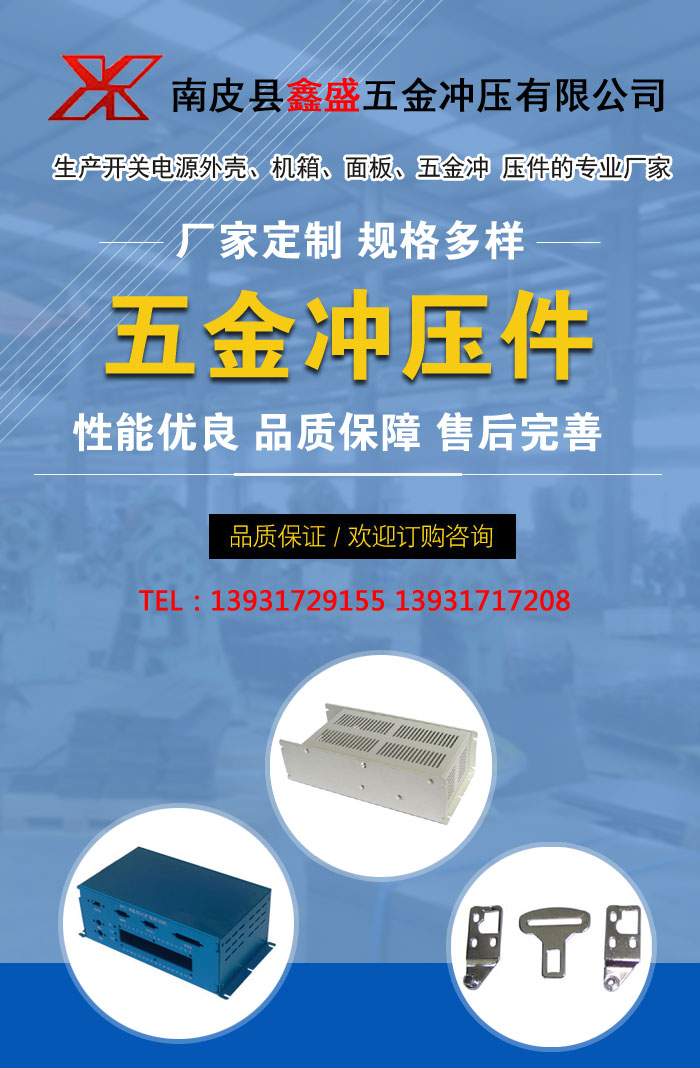 南皮縣鑫盛五金沖壓有限公司成立于1987年,是生產開關電源外殼、機箱、面板、五金沖 壓件的專業廠家,位于“五金之鄉”河北省南皮縣車官屯工業園區。